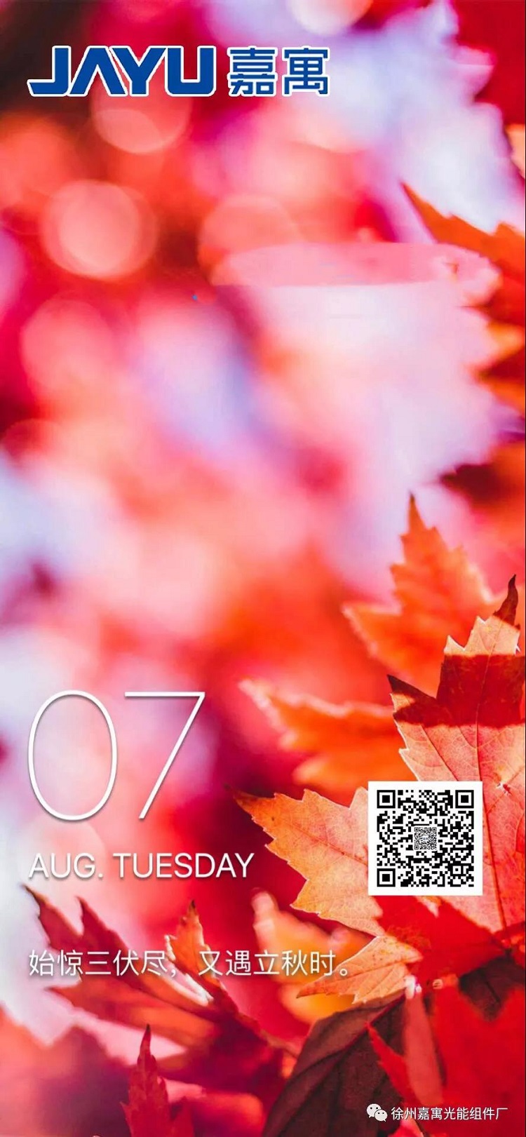 立秋,讓成熟的萬物更加芬芳,讓豐華的人生更加華美。嘉寓光能期待大家在立秋之后的人生節(jié)氣里,能有一份秋的從容,秋的沉靜。