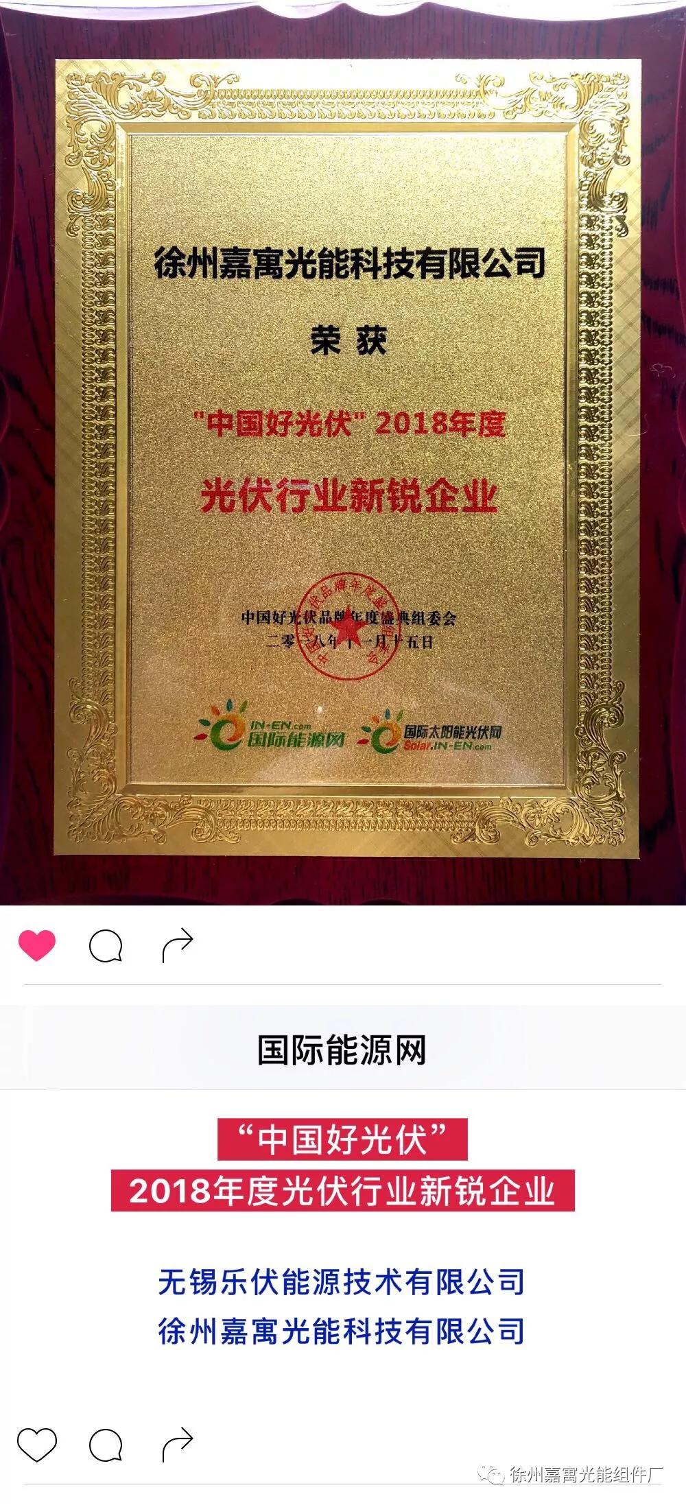 嘉寓光能在中國好光伏評(píng)選中再度斬獲光伏組件十大供應(yīng)商以及年度新銳企業(yè)