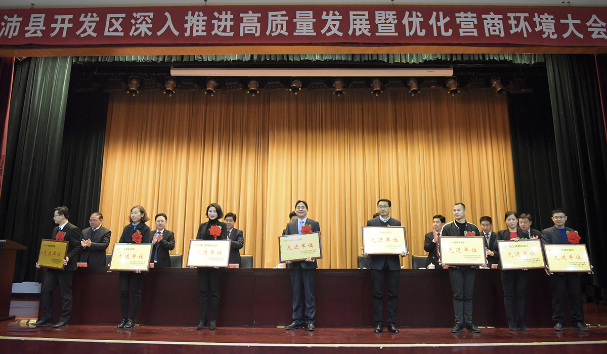 本次會(huì)議對(duì)2018年沛縣經(jīng)濟(jì)開(kāi)發(fā)區(qū)的各項(xiàng)工作進(jìn)行了總結(jié),對(duì)區(qū)內(nèi)優(yōu)秀企業(yè)、開(kāi)發(fā)區(qū)先進(jìn)單位和個(gè)人進(jìn)行了表彰獎(jiǎng)勵(lì),嘉寓股份副總裁張國(guó)峰、徐州嘉寓光能總經(jīng)理陳志榮分別代表公司上臺(tái)領(lǐng)獎(jiǎng)。
